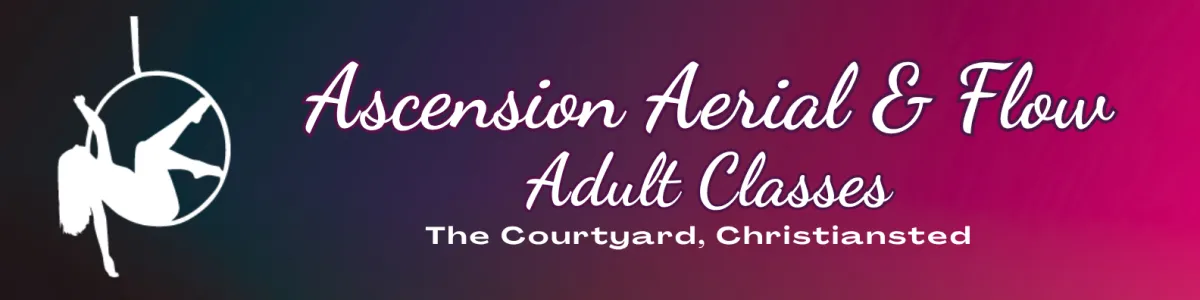 We offer weekly youth and adult classes in aerial hoop and aerial hammock and Youth Summer Camp at The Courtyard in downtown Christiansted.