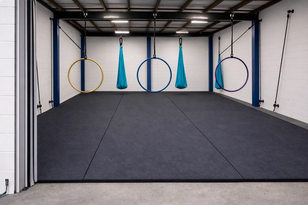 We have secured a warehouse space at Queen Anne Market — central island, larger, and purpose-built for aerial arts. The building owner is handling the structural upgrades. Our job is the inside. Here is what that transformation looks like.
